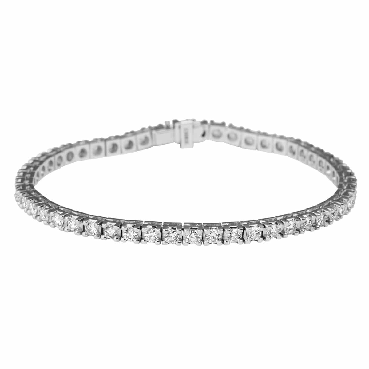 Betegnelsen tennisarmbånd beskriver et smalt og fleksibelt diamantarmbånd, som er besat med diamanter der ligger symmetrisk på række hele vejen rundt om armbåndet.