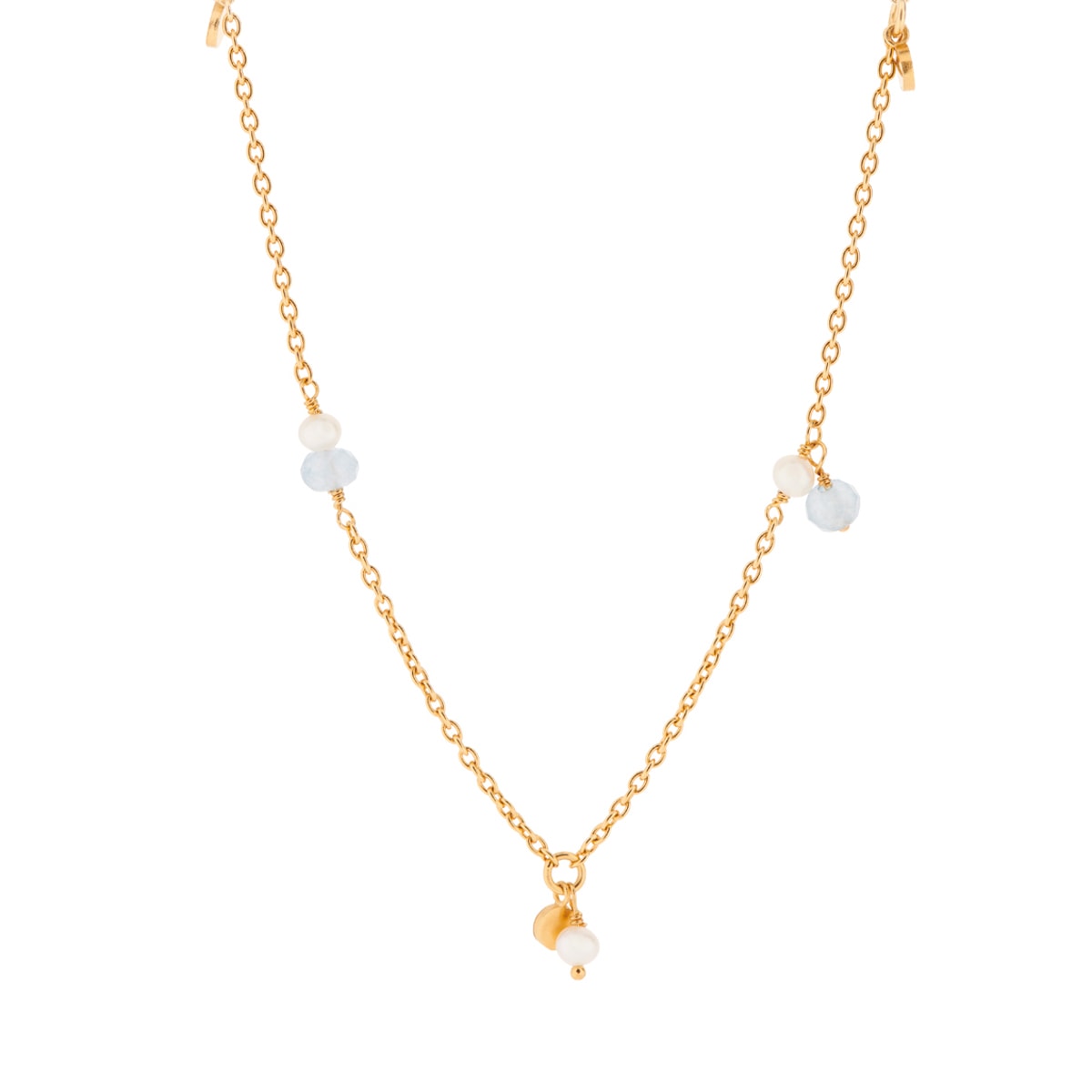 Afterglow Sea, halskæde i forgyldt sterlingsølv med blå agat og ferskvandsperler.