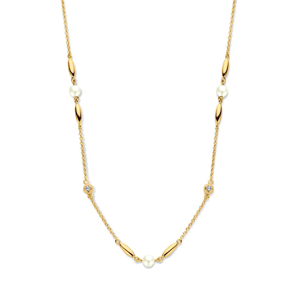 Cornelia halskæde i forgyldt sterlingsølv med zirkonia og ferskvandsperler.