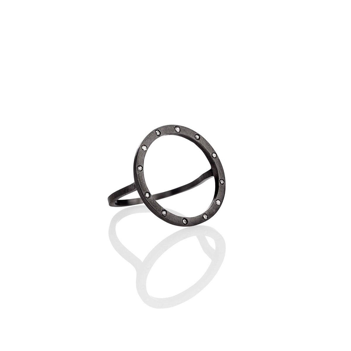 Cosmos Plus, ring i sort rhodineret mat sølv og ialt 0.06 ct. W.SI brillanter.