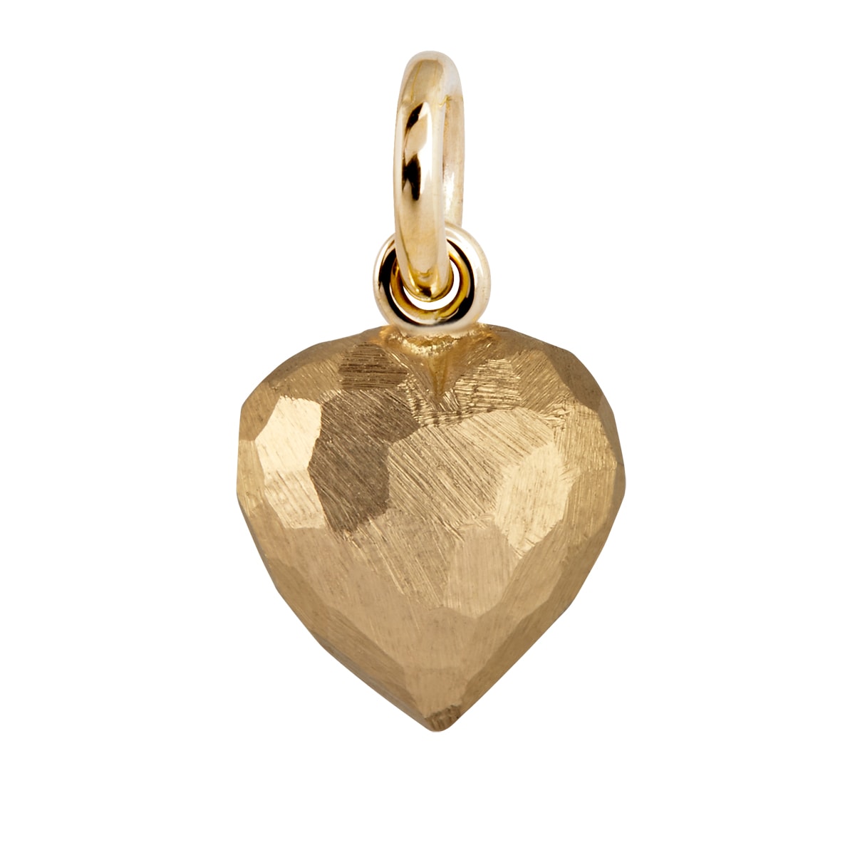 Edgy, massivt hjertevedhæng, 14K guld. Facetteret overflade m. grovmatteret tekstur.