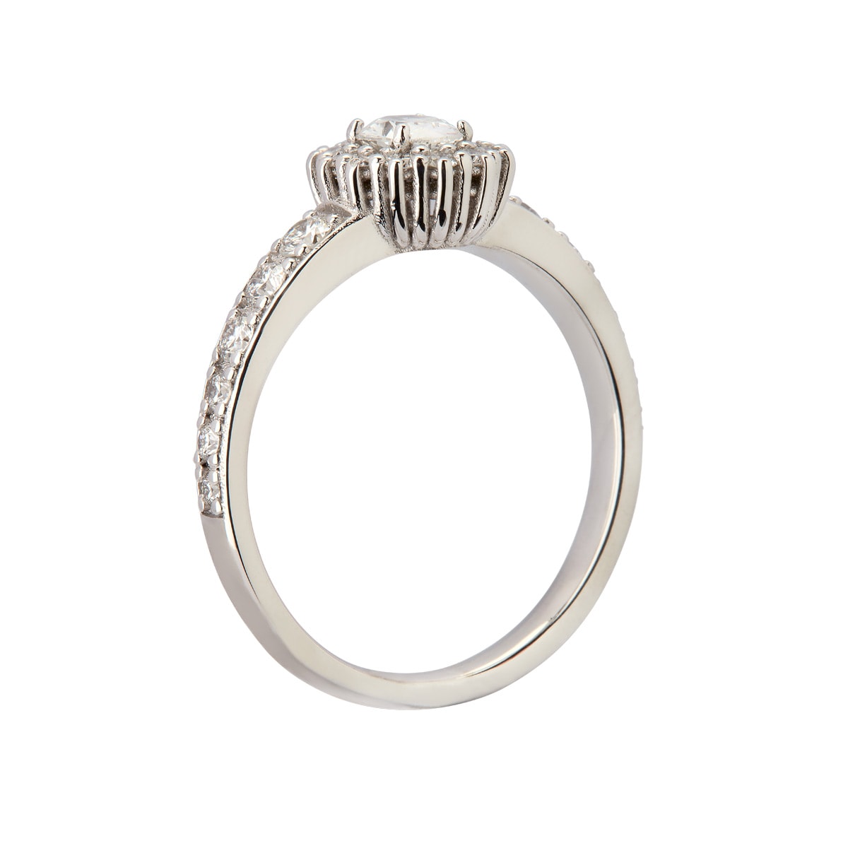 En ring der er smukkere end de fleste. Denne Halo-ring er lavet i et kvalitetsbevidst design, hvor de mange funklende brillanter skinner som en lysende stjernehimmel, hvilket har en ubeskrivelig fortryllelse over sig.