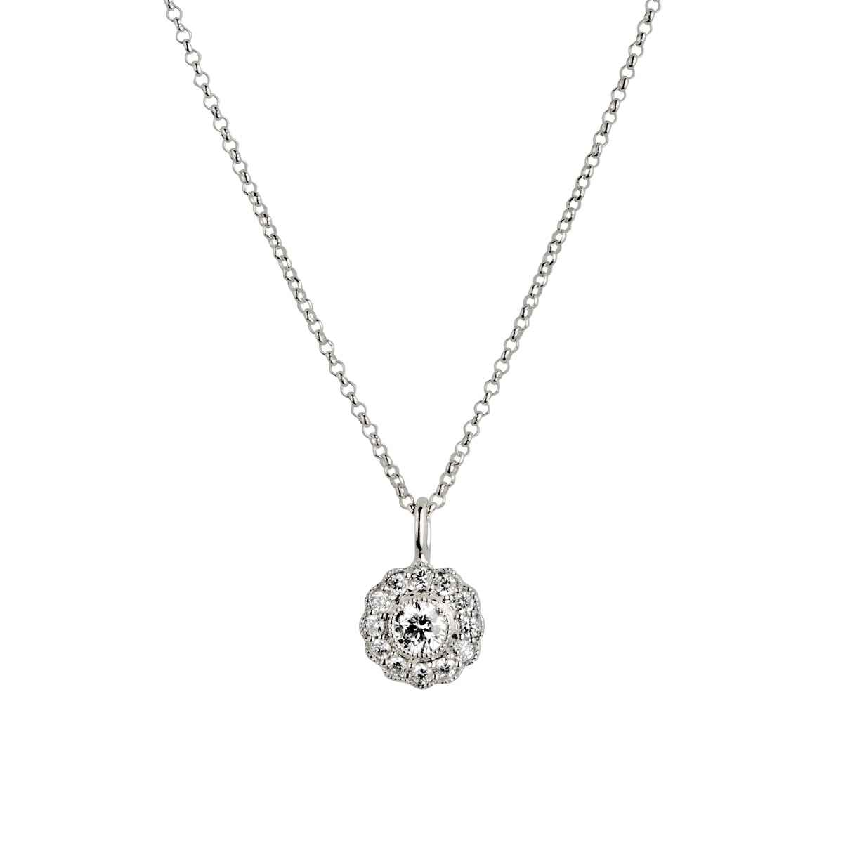 Halo, 14K vedhæng i hvidguld med kæde og i alt 0.26 ct. W.SI brillanter.