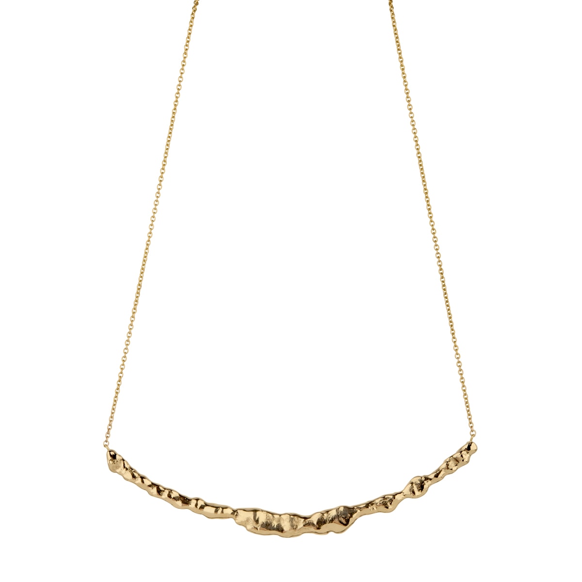 Smukt halssmykke i et elegant og råt look, hvor designet henter sin inspiration fra den stærke og glødende magma, som vi kender den fra jordens indre kerne. Det glatte design kombineret med den bankede tekstur tilføjer en unik attitude til smykket.