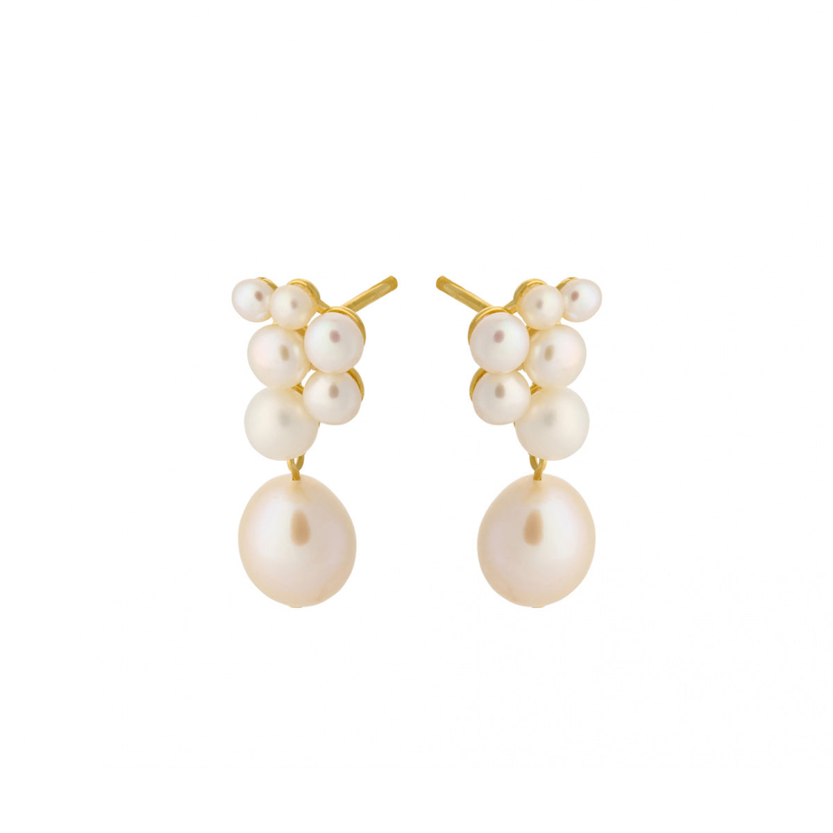 Ocean Treasure ørestikker i forgyldt sterlingsølv med ferskvandsperler.