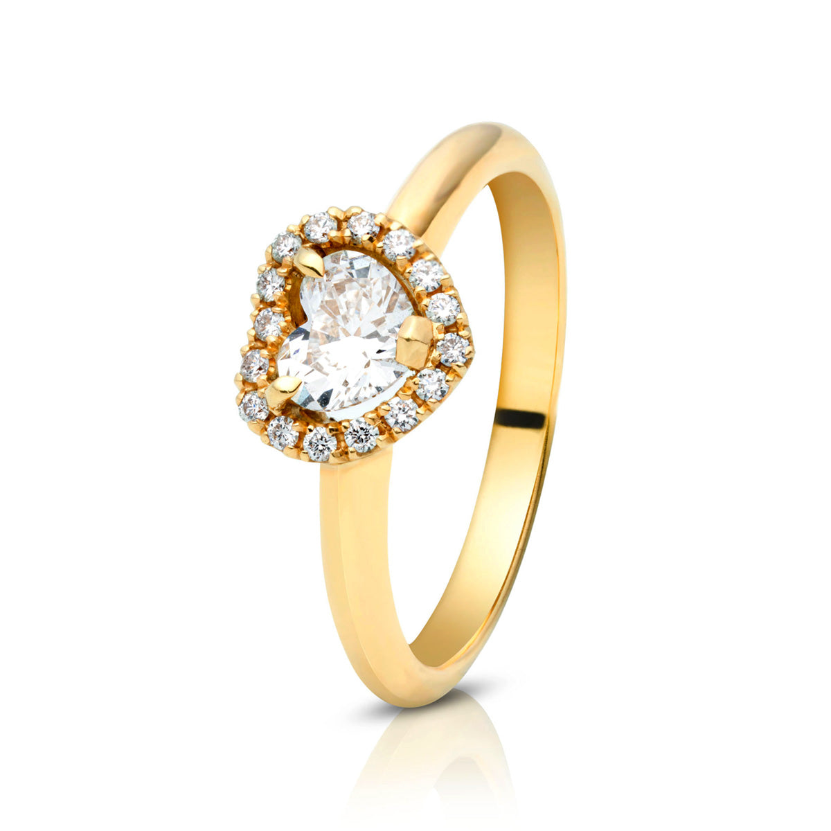 Rosét, ring i 18K guld med 0.50 ct. RIVER.VS hjerte diamant og 0.08 ct. brillantkrans.
